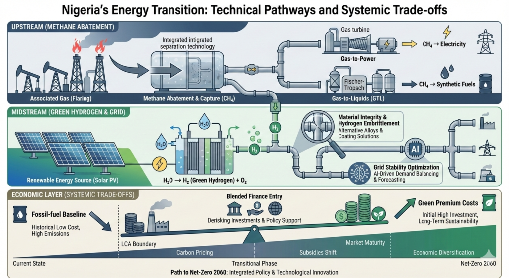 The core of Nigeria’s Energy Transition Plan (ETP), targeting net-zero emissions by 2060, hinges on several key decarbonization pathways. A primary focus is the reduction of methane emissions, particularly from gas flaring, a pervasive issue in Nigeria’s oil and gas sector. While the ETP aims for a 100% reduction in methane from flaring by 2030, recent data indicates that approximately 7.2 billion cubic meters of associated gas were flared in 2023, highlighting a persistent challenge [2]. The technical mechanism for methane abatement often involves gas utilization projects, converting flared gas into electricity (gas-to-power) or liquid fuels (gas-to-liquids). These processes, while reducing direct methane release, require substantial capital investment and robust infrastructure, including gas gathering networks and processing facilities. The efficiency of these conversions, and their overall lifecycle greenhouse gas (GHG) footprint, must be meticulously assessed through Life Cycle Assessment (LCA) to ensure genuine environmental benefits.